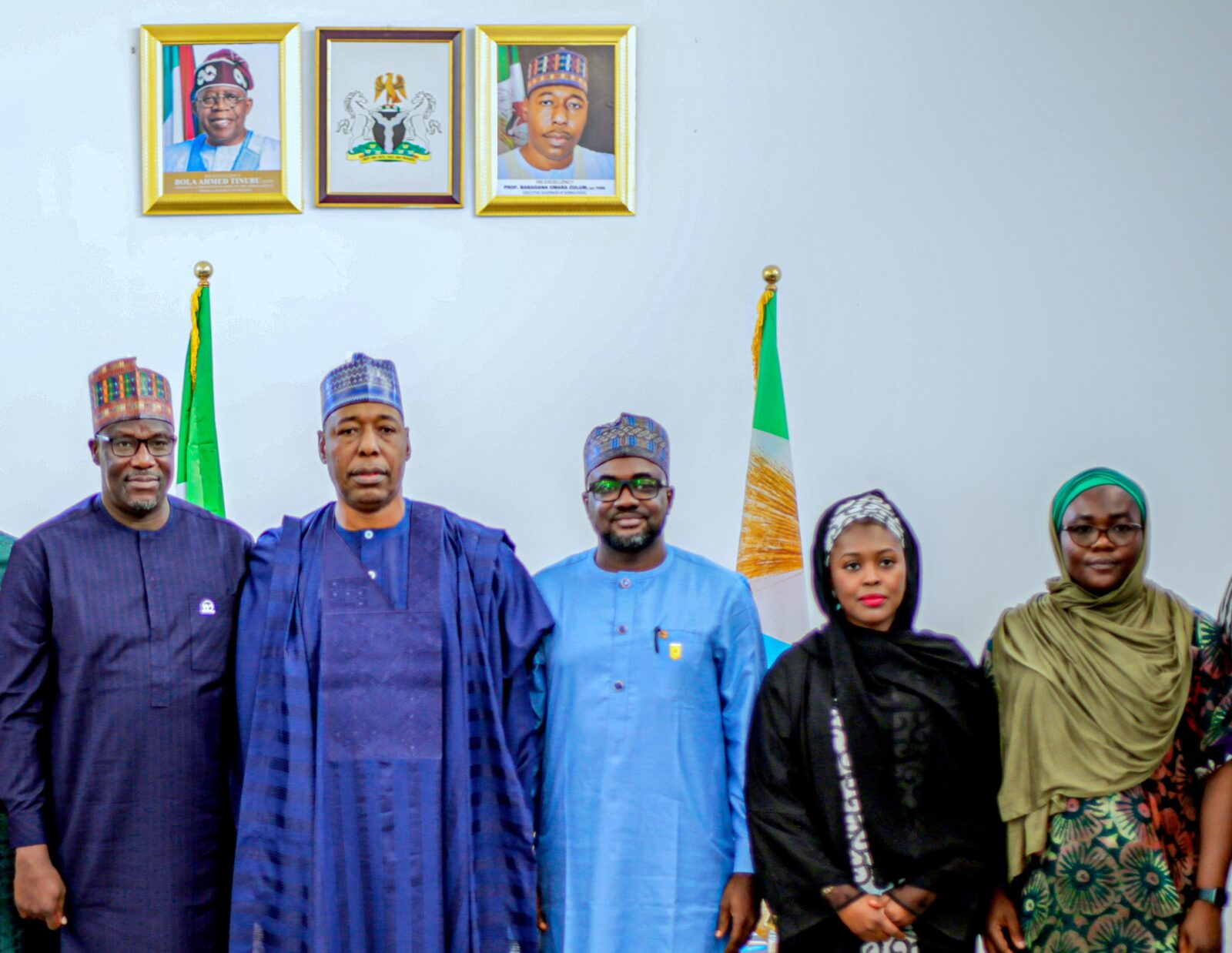 L-R – Regional Director, North, Leadway Assurance, Alhaji Yisau Gbadamosi; Executive Governor, Borno State, Prof. Babagana Umara Zulum CON mni; Group Chief Finance Officer, Leadway Holdings, Mr. Tunde Alao-Olaifa mni; Special Adviser to the President, National Economic Council (NEC) and Climate Change Resident (Office of the Vice President), Hajia Rukaiya El-Rufai and Group Head of Corporate Services, Leadway Holdings, Mrs. Aishat Bello-Garuba, during the handover of donated relief materials worth N117 million to the Borno Relief Fund by Leadway Group at the Borno State Government House in Maiduguri , recently.