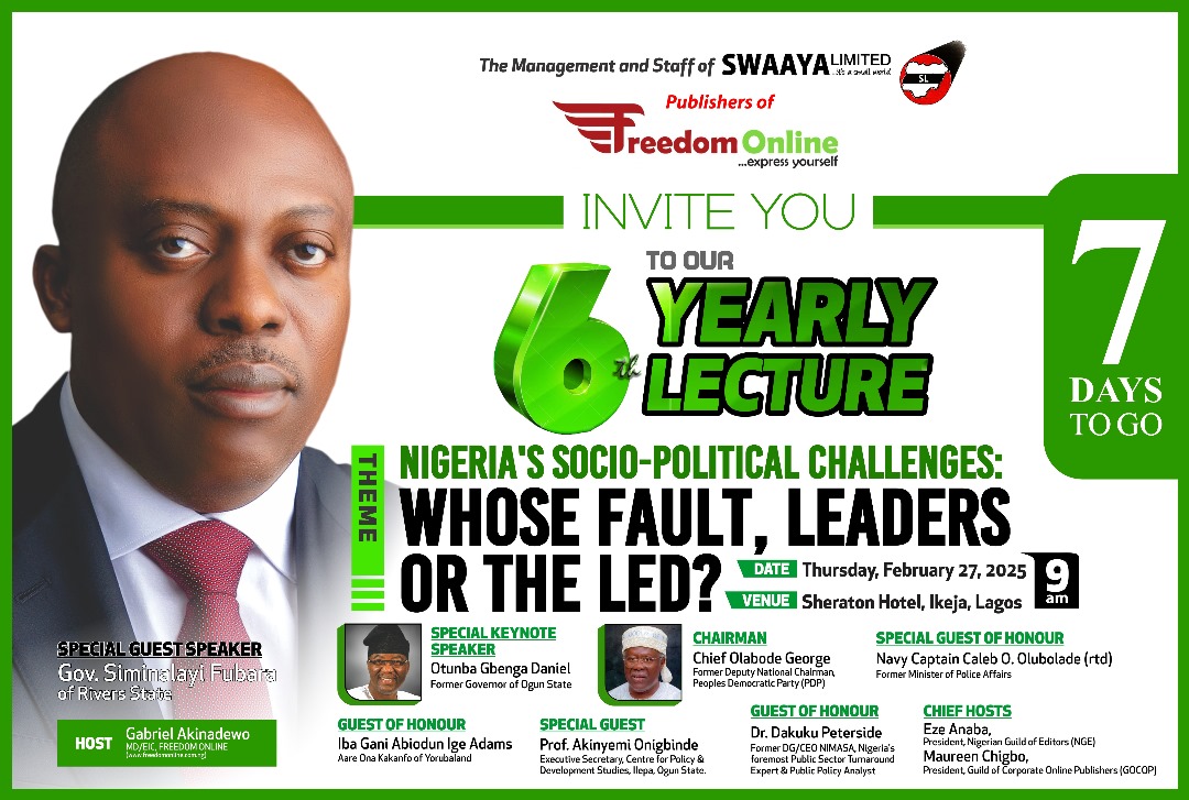 Governor Siminalayi Fubara of Rivers State will, on Thursday, deliver the 6th yearly lecture of Freedom Online newspaper in Lagos.