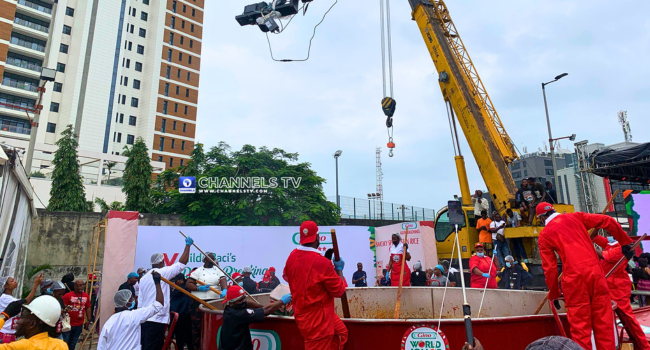 During an eight-hour open cooking session at Eko Hotels and Suites, VI, Lagos, famous Nigerian celebrity chef Hilda ‘Baci’ Bassey on Saturday completed her ‘World Record attempt for the largest pot of jollof rice.