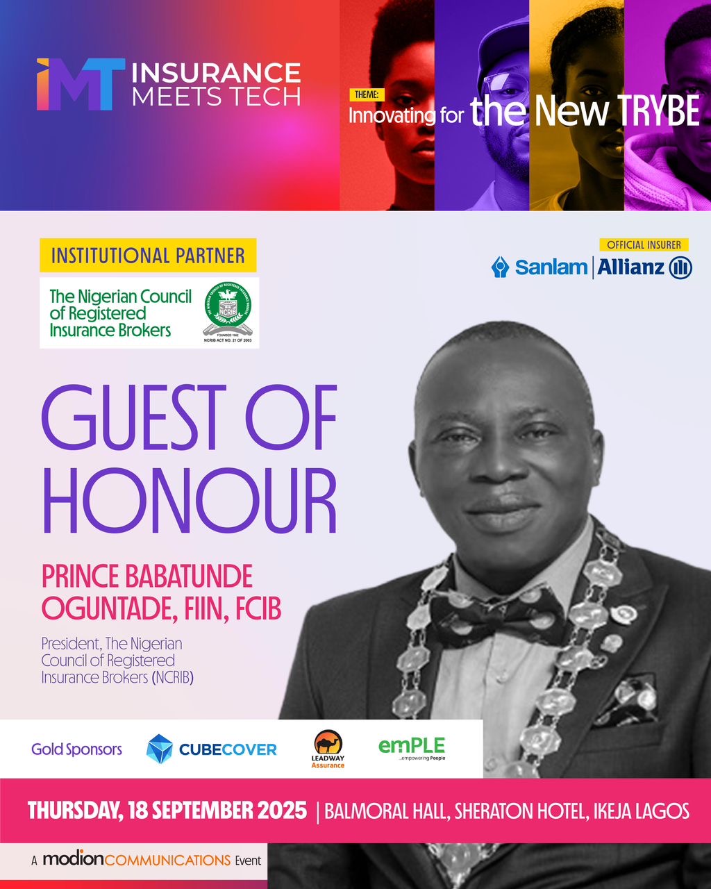 Prince Babatunde Oguntade, FIIN, FCIB, President and Chairman of the Governing Board of NCRIB, who will be speaking at the conference, expressed his enthusiasm for the partnership, stating, “Insurance brokers remain the trusted bridge between insurers and the public, and in a time of rapid change, our relevance depends on how well we adapt, innovate, and lead – Insurance Meets Tech provides the strategic platform for such engagement and collaborations. As an institution, we are committed to ensuring that brokers are not only part of the conversation but are central to shaping the future of insurance in Nigeria and across Africa.”
