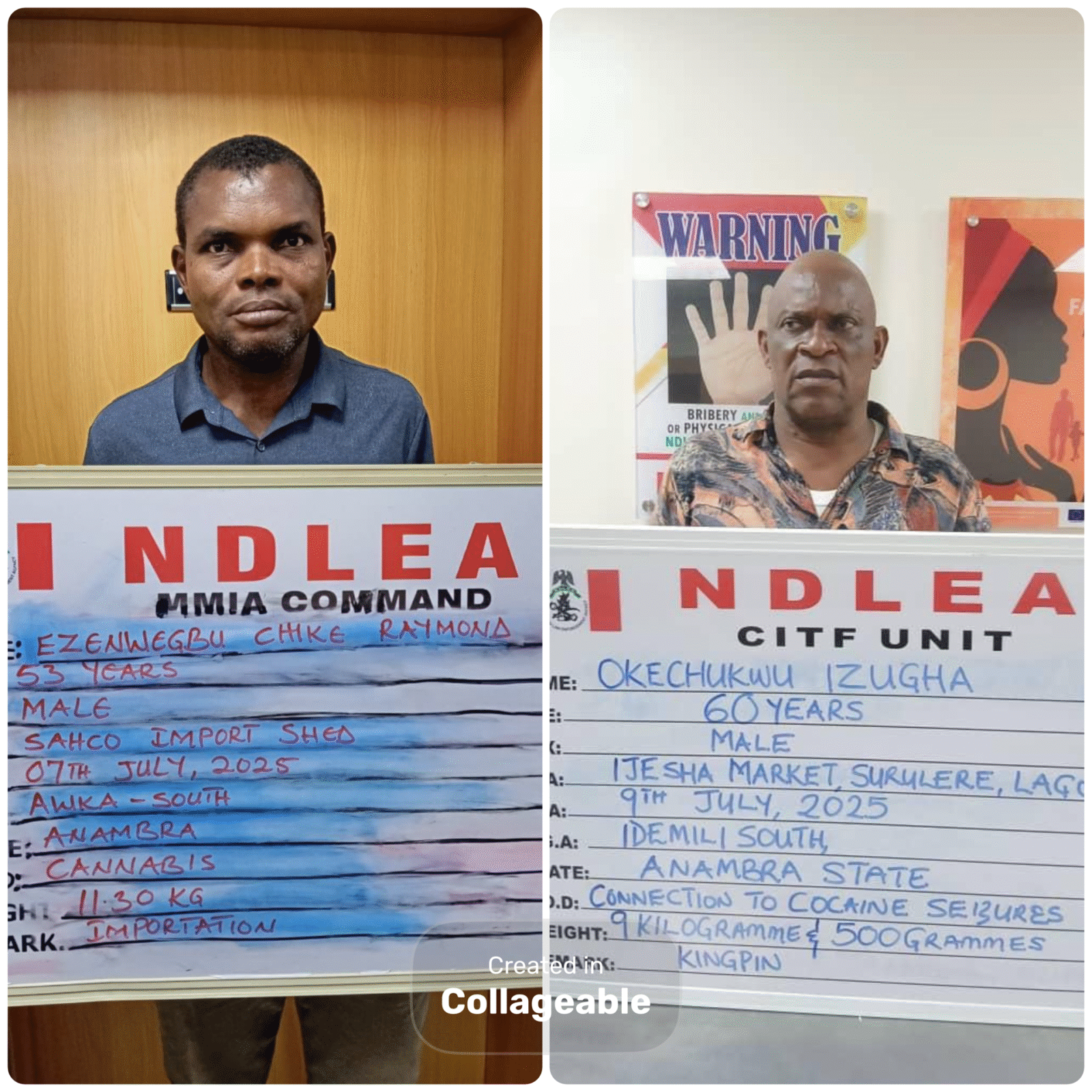Meanwhile, a notorious drug kingpin Okechukwu Izugha (a.k.a Okey Omeogo) has been arrested in Lagos by operatives of a Special Operations Unit of NDLEA after 12 months of going into hiding. He was nabbed on Wednesday 9th July at his wife’s shop in Ijesha market.