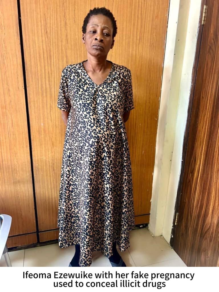 Operatives of the National Drug Law Enforcement Agency, (NDLEA), have arrested a 50-year-old widow and fashion designer, Mrs. Ifeoma Henrietta Ezewuike, over attempt to traffic 1.3 kilograms of cocaine, using fake pregnancy as a façade to escape scrutiny and detection.