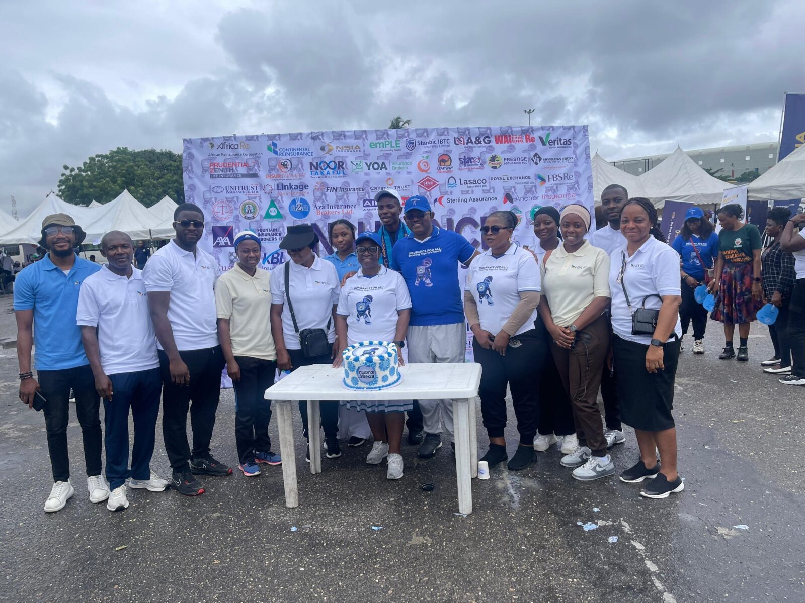 Cross section of members of staff of FBS Reinsurance Limited with the President of Chartered Insurance Institute, (CIIN), Mrs Yetunde Ilori, during the 2025 insurance Industry fitness walk organized by CIIN to mark insurance week, held yesterday in Lagos.