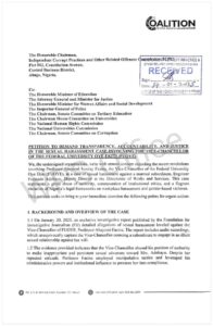 The petition, submitted on January 27, 2025, was addressed to the ICPC Chairman and copied to key stakeholders, including the Minister of Education, the Attorney-General of the Federation and Minister not Justice, Inspector-General of Police, and relevant Senate and House Committees of Representatives Committees.