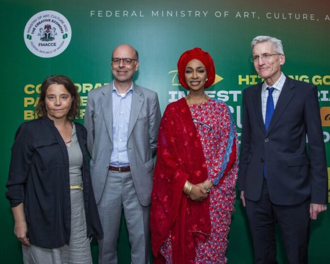 -R: Dr. Nadine Siegert; Director, Goethe-Institut Nigeria; Michel L.H. Deelen, Consul General, Consulate General of the Kingdom of the Netherlands; Hanatu Musa Musawa,...