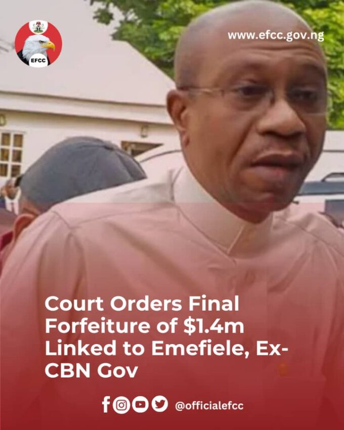 Justice Ayokunle Faji of the Federal High Court, Ikoyi, Lagos, on Thursday, March 6, 2025, ordered the final forfeiture of $1,426,175.14 ( One...