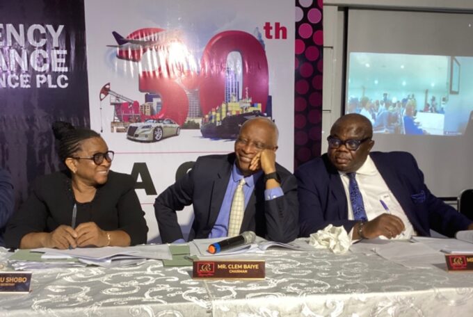 L-R: Company Secretary, Regency Alliance Insurance Plc, Mrs Anu Shobo; Chairman, Mr Clem Baiye; and Managing Director, Mr. Bode Oseni, during the company’s...