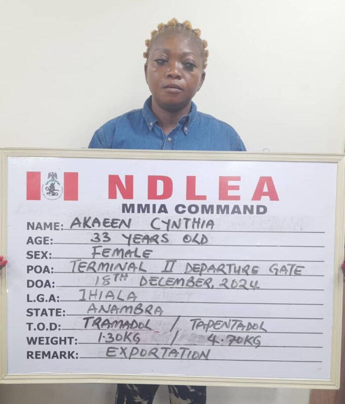 An Italy-based businesswoman Cynthia Akaeen was arrested by NDLEA officers while trying to board a Royal Air Maroc flight to Italy via Addis...