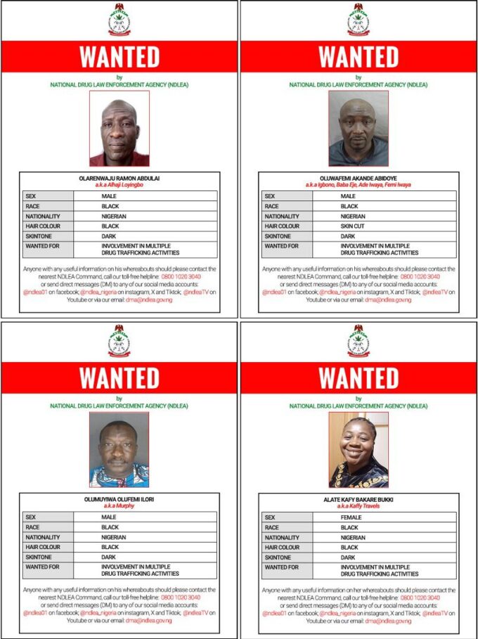 ByBusinessTodayNGApril 1, 2025The National Drug Law Enforcement Agency, NDLEA, has declared four associates of Lagos drug kingpin, Alhaji Suleiman Aremu Ganiu (a.k.a Barryshine, Ejeoto) wanted...