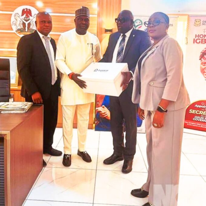 From L-R: Mr. Kayode Okeremi, Head of the South-West Region, Lasaco Assurance Plc; Hon. Teslim Igbalaye, Secretary to the State Government, Osun State;...